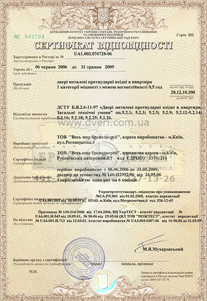 Далекого 2006 року наше підприємство провело перші сертифікаційні випробування бронедверей на пожежостійкість. Випробування проводились у лабораторії "Тест" у м. Гостомель, а сертифікат видавав "Укрметртестстандарт". За підсумками випробувань, ми отримали сертифікат на двері пожежостійкі ІЕ-30!
