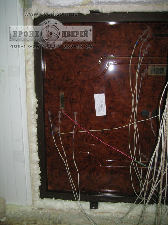 Испытываемая дверь была вмонтирована в одну из стен специального помещения – холодильника. Все щели были загерметизированы и с внутренней стороны температура опустилась примерно до -20 °С, а с наружной стороны оставалась комнатная температура. Показатель теплопередачи составил 0.61, что соответствует пункту 5.2.2. ДСТУ ВБ 2.11-97.