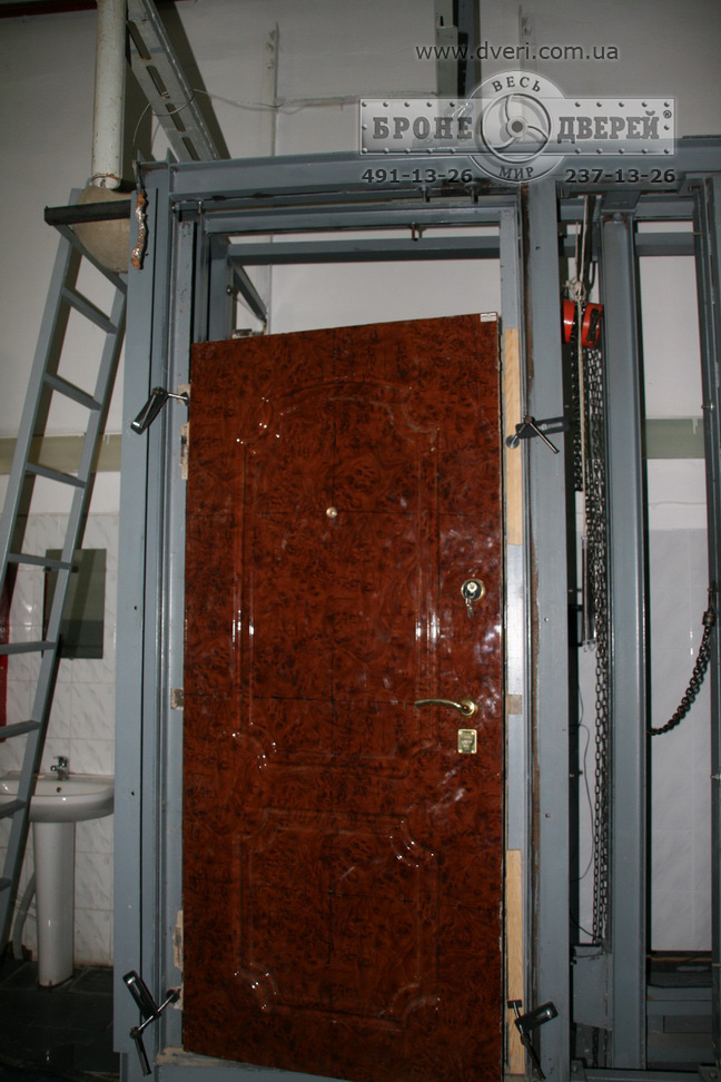 Проверялись на соответствие ДСТУ двери металлические противоударные 1 категории по сопротивлению к взламыванию с пределом огнестойкости 0.5 часа. На самом деле эти испытания дверей – это не скучное занятие, а довольно интересный процесс изучения продукта, его свойств и его сильных и слабых сторон. Именно при прохождении испытаний дверей и получается основной обьем знаний по механике, физике и другим характеристикам продукта. Что не маловажно – специалисты лаборатории всегда подскажут, где могут быть недостатки и как лучше их исправить. И конечно качественный товар можно сделать только тогда, когда теория производителей проверяется и испытывается в лабораториях с соответствующими выводами, а не когда теория остается теорией и производитель думает, что все делает правильно, на самом деле просто переводит материалы.