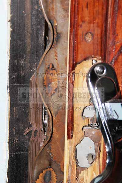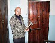 Одним словом мы принялись за работу. Конечно, из моральных соображений мы не будем описывать всю процедуру взлома двери и замка. Скажем только то, что практически все замки любого производителя имеют слабую сторону. Достаточно сильно ударить по ригелям и они сами заскочат обратно в замок. Воры давно об этом знают, производители не заботятся, а мы просто повторили действия известные многим ворам.