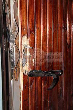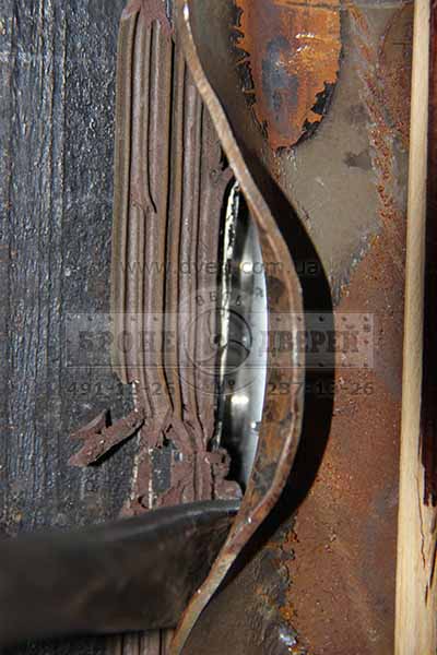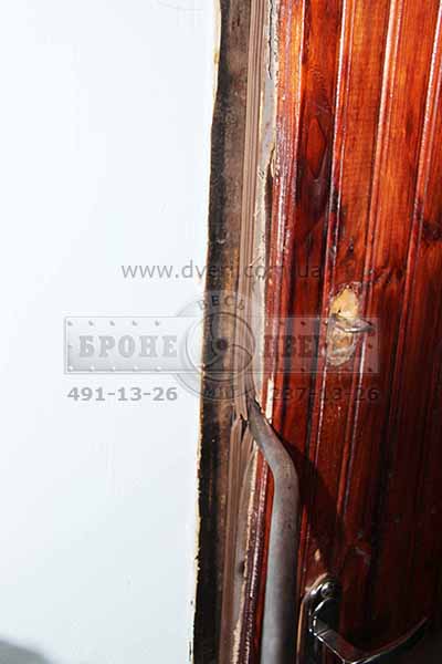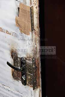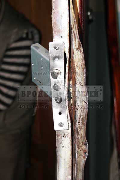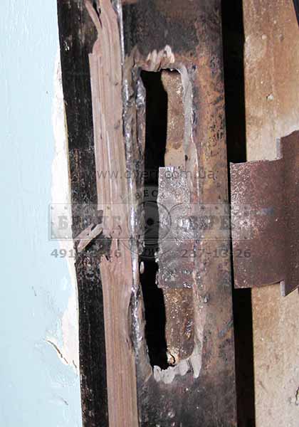 Несмотря на то, что притвор у двери был однолистовой с толщиной всего около 2 мм, отверстия под ригеля замков были вырезаны сплошным неаккуратным овалом и двери были выполнены кустарно (без применения лазеров и прочей модной аппаратуры) - двери примерно за 30 минут нам не удалось отжать.