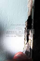 После проверки двери на отжим ломом мы решили пойти через ригеля. Хотя стена была выполнена из бетона и двери стояли довольно ровно - была возможность добраться до ригелей замков. Защиты ригелей в данной двери не было. Видимо установщики этой двери приняли решение её не делать. А зачем? Ведь двери стоят в бетоне!