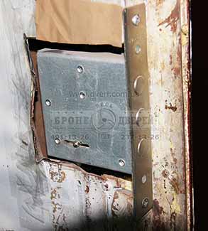 На наш взгляд, в этом сыграли значительную роль: достаточно нормальный металл на полотне, который дал ему необходимую жесткость и, конечно, мощные ригеля замка Класс 012. 4 ригеля диаметром по 18 мм и вылетом примерно на 40 мм сделали свое дело. Заметьте, системы "краб" (система закрывания замка вверх и вниз коробки) в этой двери не было.