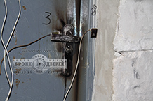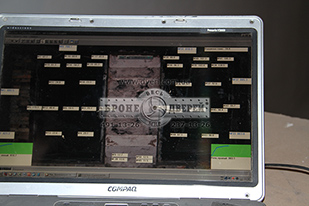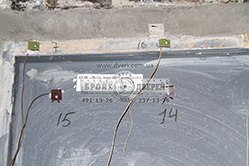 Во время испытаний температура в печи превышает 850°C, а то и 900°C. Как вы видите на противопожарных дверях расположены термопары – датчики, фиксирующие температуру поверхности пожаростойких дверей и выводящие показатели на компьютер.