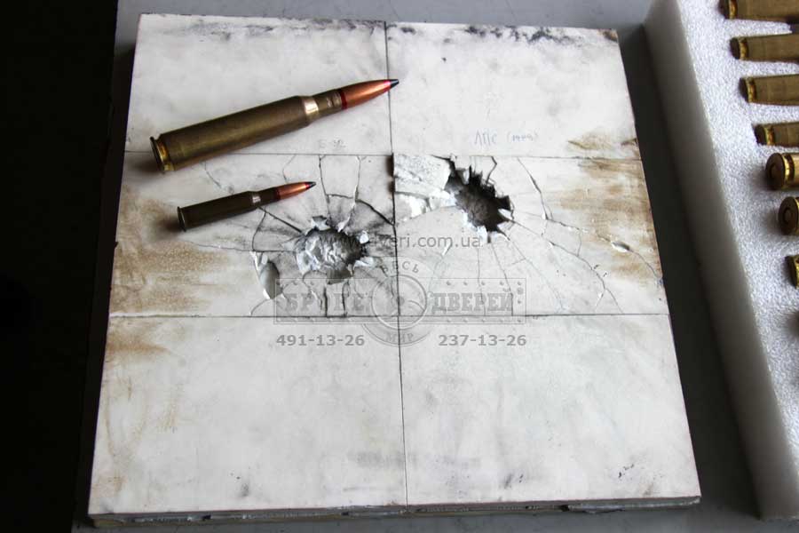 Проверялись различные типы брони толщиной от 5.5.-до 12 мм с различной твердостью. так же проверялись различные типы металлокерамики совместно с бронесталью и другими композитными подложками и т.д.