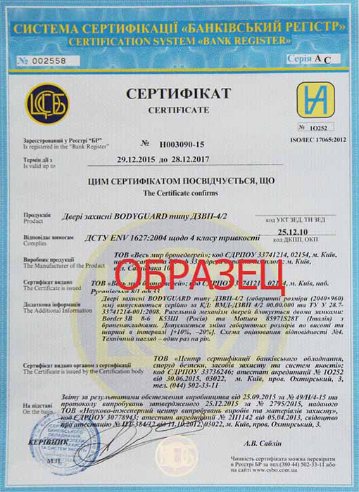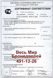 Сертификат на двери защитные пулестойкие класса ДЗП–4