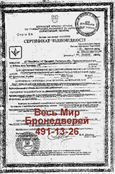 Сертификат соответствия на металлические "входные в квартиры" противоударные двери 2 категории по сопротивлению к взламыванию.