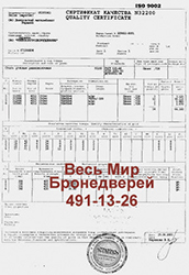 Сертификаты качества на двери металлические пулестойкие пуленепробиваемые защитные специального назначения: