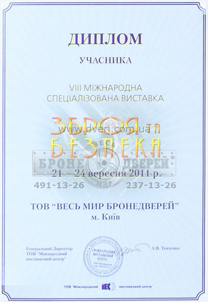 С 21-го по 24-ое сентября 2011 года наше предприятие принимало участие в выставке «Оружие и безопасность», которая проходила в Киеве в Международном выставочном центре на Броварском проспекте, 15.