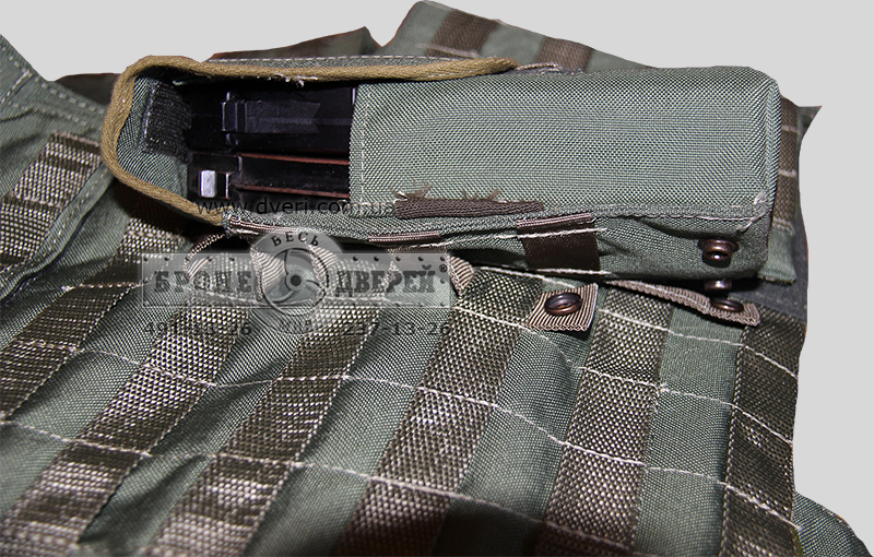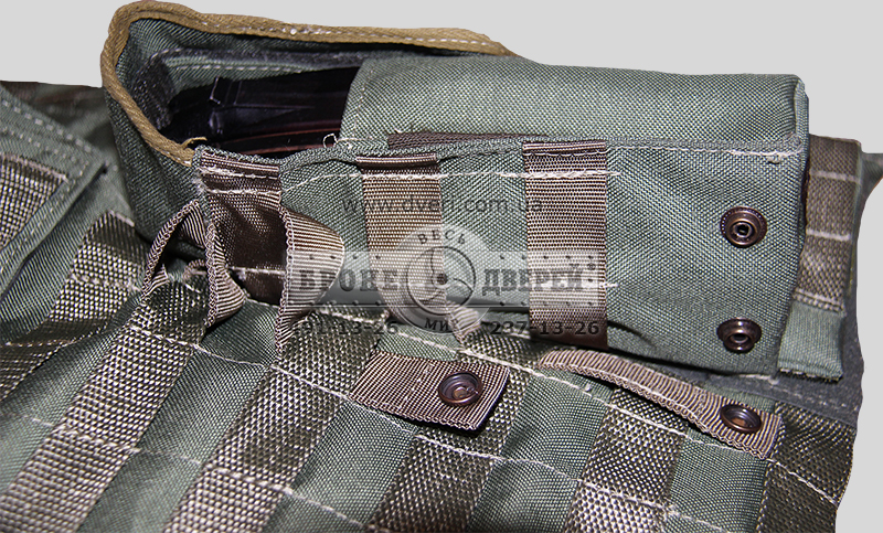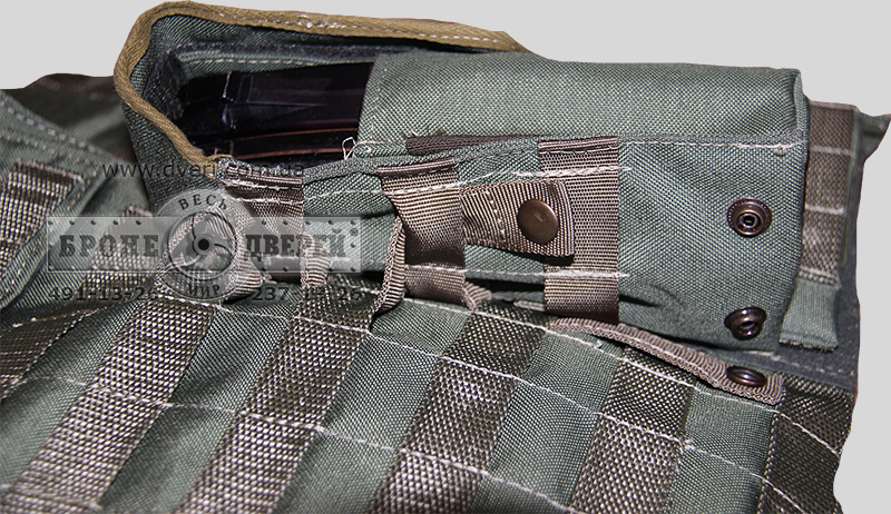 Все подсумки надёжно фиксируются на PALS-платформе бронежилета с помощью крепления Natick Snap, представляющего собой нейлоновый ремешёк, жёстко застёгивающийся на кнопку. Такой способ позволяет надёжно разместить оборудование и амуницию, что крайне важно в боевых условиях, например, при перезарядке оружия, когда не простительно случайное отсоединение подсумка и тому подобное.