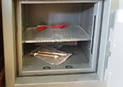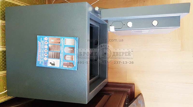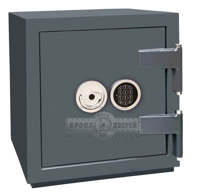 Сейф банковский сертифицированный на 3-ий класс EN 1143. Может быть в исполнении с механическим замком-блокиратором или в более дорогой версии с одним электронным замком. Размеры сейфа: по глубине 450 мм, по ширине 450 мм и по высоте 480 мм. Вес изделия около 140 кг. Есть как складская программа, так и возможность изготовить сейф под заказ. У сейфа есть полочка, расположение которой можно менять. Также в сейфе предусмотрено 2 отверстия для крепления к полу.