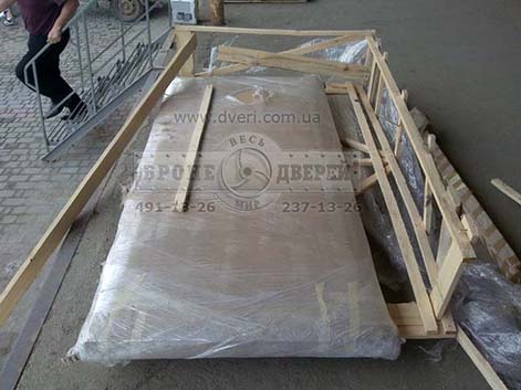 Упаковка для передачи двери по Украине или за рубеж. В случае, когда монтаж бронедвери осуществляется не в Киеве и двери отправляются не нашими специализированными автомобилями - конечно, они требуют упаковки. Мы часто передаём различными перевозчиками бронедвери по всей Украине. В таком случае двери проходят многоуровневую упаковку.