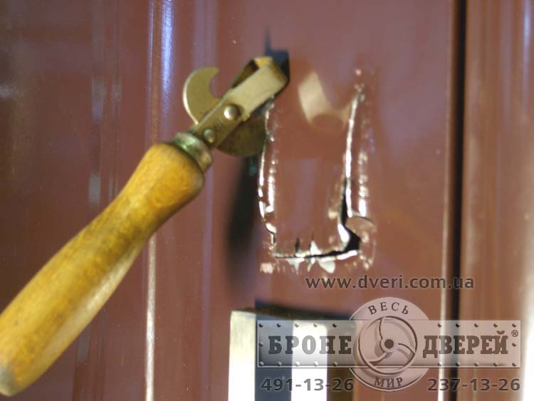 Професиональным – при помощи «свёртышей», отмычек (в том числе и бампинговых) и прочего профессионального инструмента воров или аварийщиков. Такой инструмент не купишь в строительном магазине. Порою сама металлоконструкция бронедвери сделана очень хорошо и замки стоят дорогие, но, например, при помощи «свёртыша» можно вскрыть практически любой сувальдный замок примерно за 20-30 секунд. Люди с большими познаниями в области вскрытия входных дверей в квартиры и, обладающие соответственным инструментом, знают себе цену и не полезут к пенсионеру за 50 гривнями. Они ищут рыбку покрупнее – граждан с доходами куда выше среднего или легально работают на аварийных вскрытиях и зарабатывают предостаточно, чтобы не лазить куда не следует. Таких специалистов действительно очень немного и от них уже надо делать бронированные двери посерьезней: с редкими и необычными замками и всякими хитростями в конструкции стальных дверей и замков. Помните: даже профи – люди. И не могут знать и уметь всё.