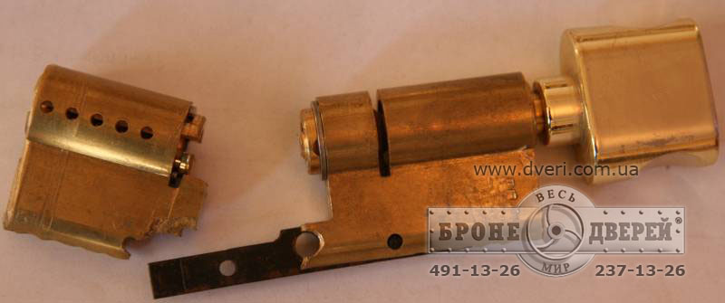 | Евроцилиндры. Вскрытие самым распространенным методом – переламыванием сердцевины. Так вскрывают большинство бронедверей у которых нет защитных броненакладок перед цилиндром. |