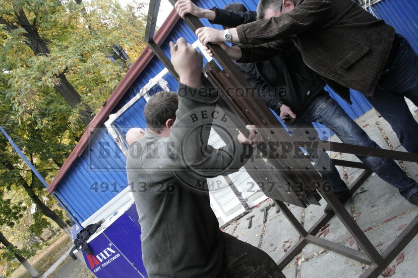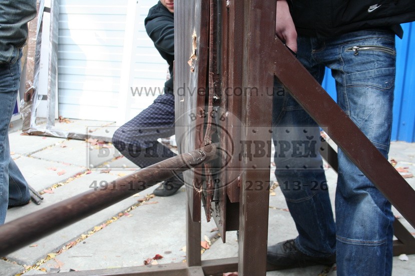 Дверь-стенд была выполнена из толстостенных уголков и толщина листового притвора составляла в сумме 6 мм.