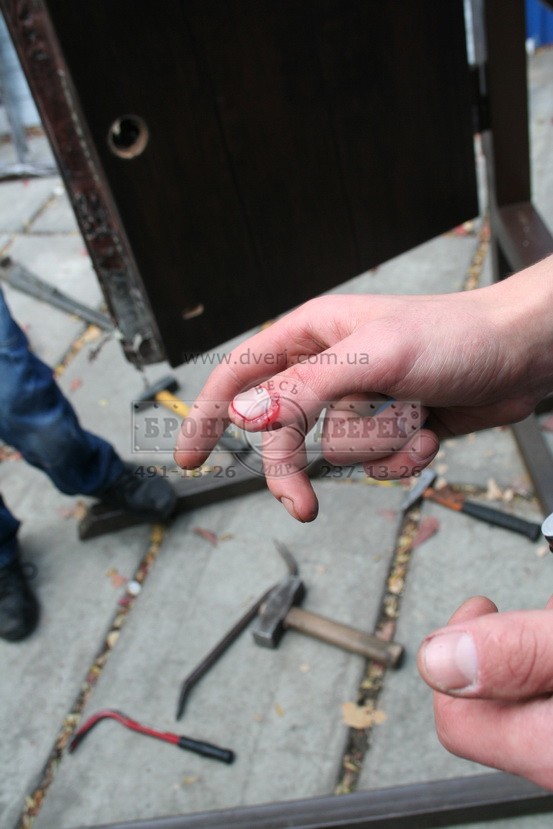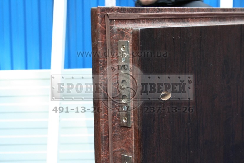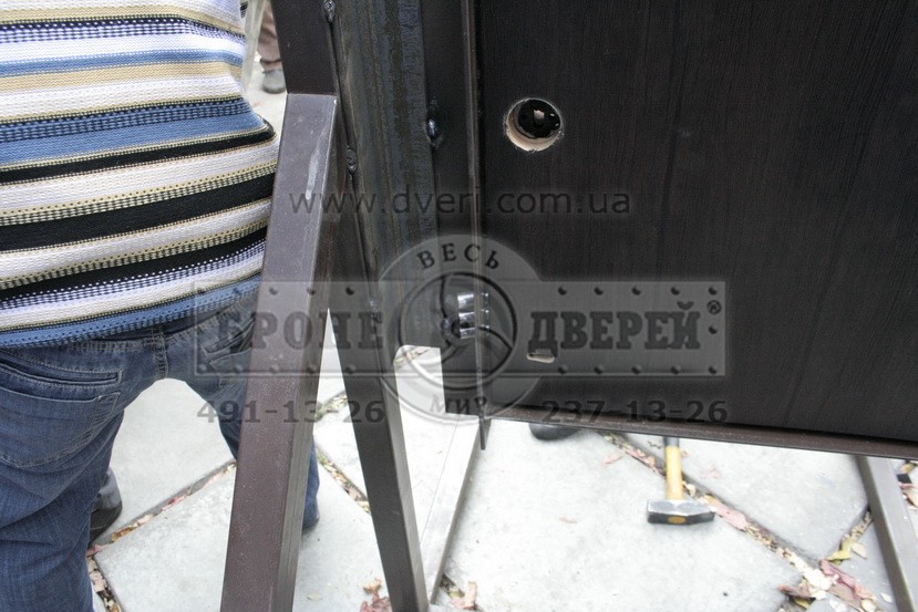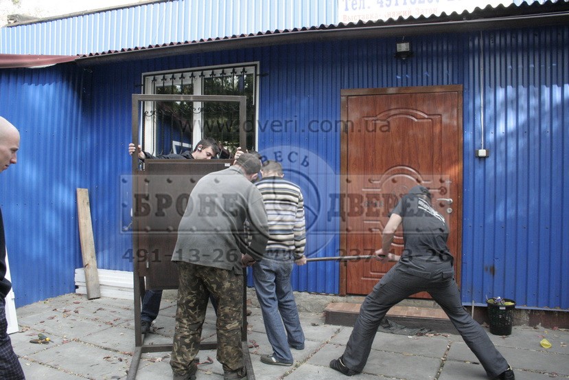 Состоялись испытания замков, защитных броненакладок и конструкции двери. Испытания проходили в Киеве на производстве компании «Весь мир бронедверей» по ул. Регенераторная 4.