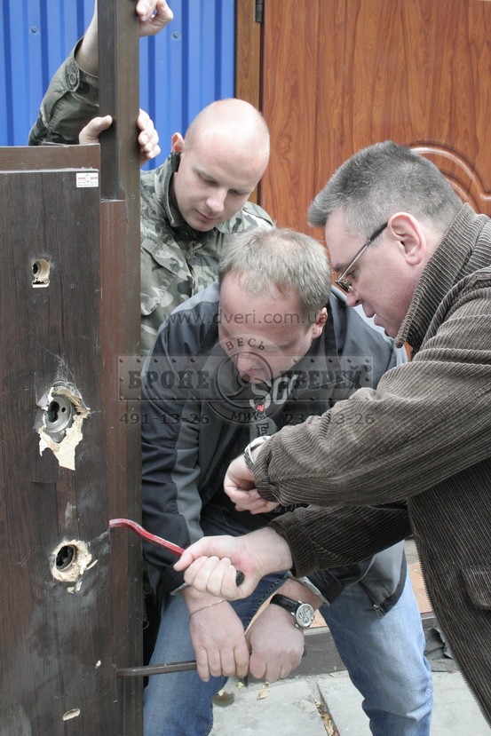 Для независимого контроля испытаний, консультаций и изучения результатов были приглашены: Президент УЛФ Илья Воинов и ведущие аварийщики г. Киева. Руководство компании «Весь мир бронедверей» выражает им благодарность за помощь оказанную в данном эксперименте.