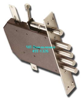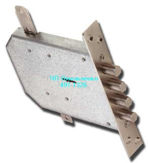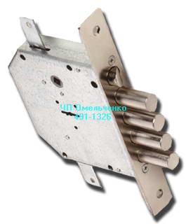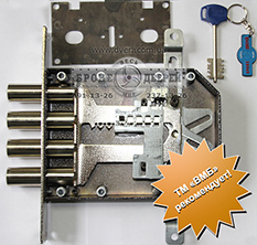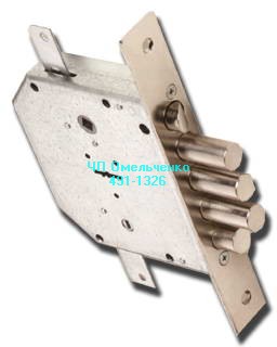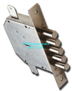 Замок нижний врезной, 4 ригеля по 18 мм. с вылетом 40 мм. с защелкой, сувальдный механизм на 1,5 млн. секретов.