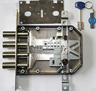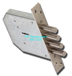 Замок нижний врезной, 3 ригеля по 12 мм., сувальдный механизм.