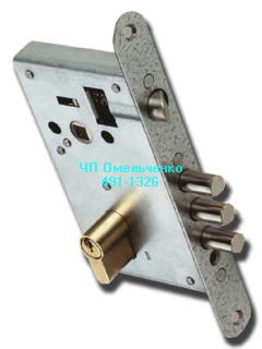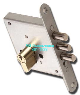 Замок нижний врезной, 5 ригельный с защелкой, евроцилиндр, сувальдный механизм на 1,5 млн. секретов, для защиты от распиливания в одном из ригелей вставлен штифт с высокой твердостью, возможна установка системы "краб".