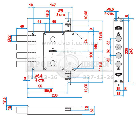 Замок верхний врезной, евроцилиндр, возможна установка броненакладки.