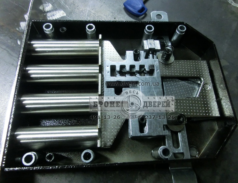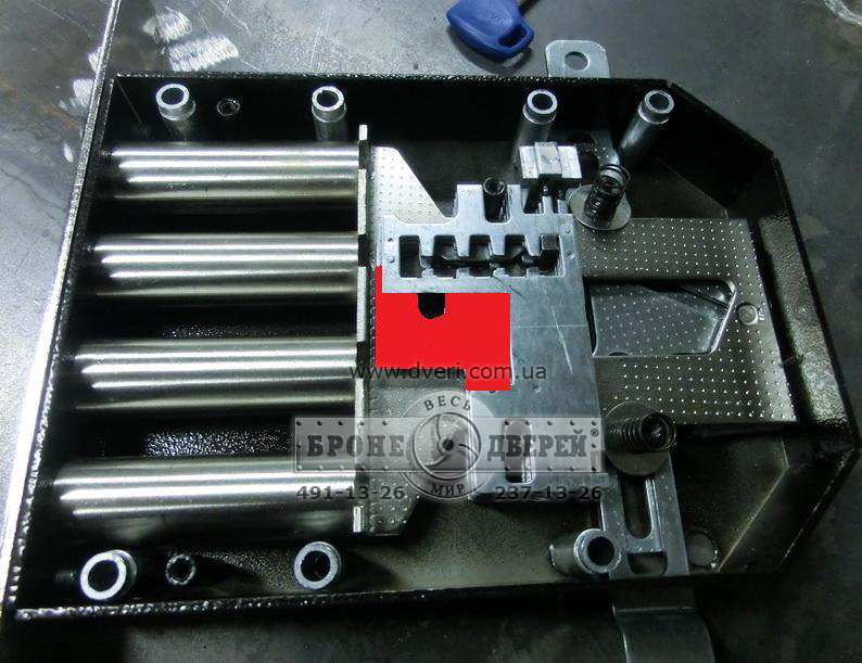 каленая бронепластина в комплекте, защищающая от высверливания;