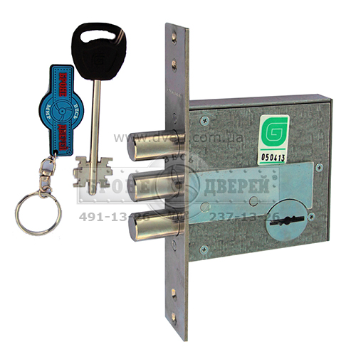 Замок сувальдный с 3-мя ригелями диаметром 15,8 мм, выходящие на 26 мм. Накладки со шторками (хром). Количество комбинаций 1 600 000. Класс 4.