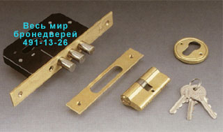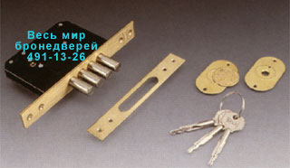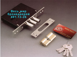 3 ригеля, защелка. Замок комплектуется компьютерной сердцевиной с лазерной насечкой (около 5 000 000 комбинаций). Цвет замка - латунь. Персональная карточка.