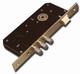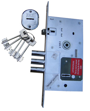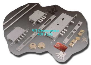 Система, состоящая из 3-ёх мощных замков, 14 точек запирания. Включает в себя систему "краб". Система замков комплектуется 2-мя броненакладками. Цвет - латунь. 1 евроцилиндр с "английским" ключем и компьютерная сердцевина (5 000 000) комбинаций. Цвет замков и ригелей - хром.