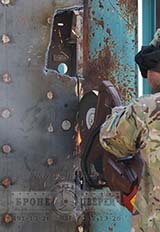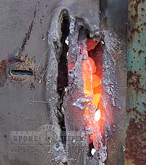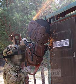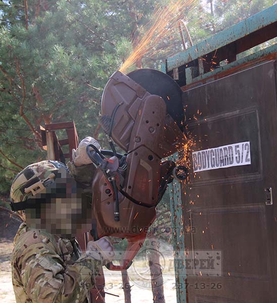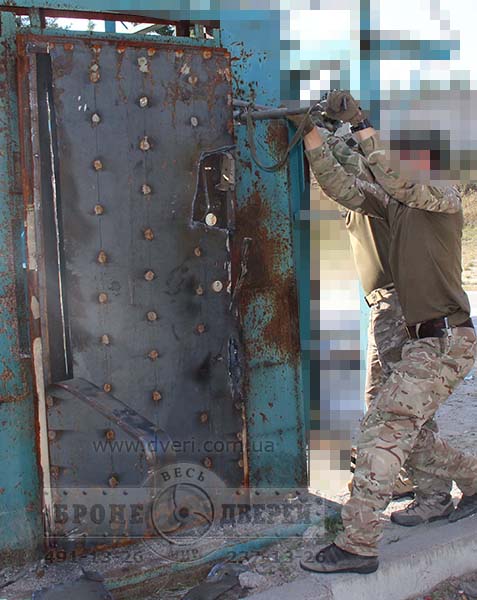 В ходе испытаний был получен очень ценный опыт по взлому бронедвери газовым резаком, специальными лапами и бензорезом.