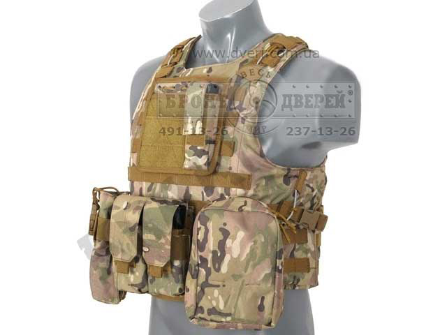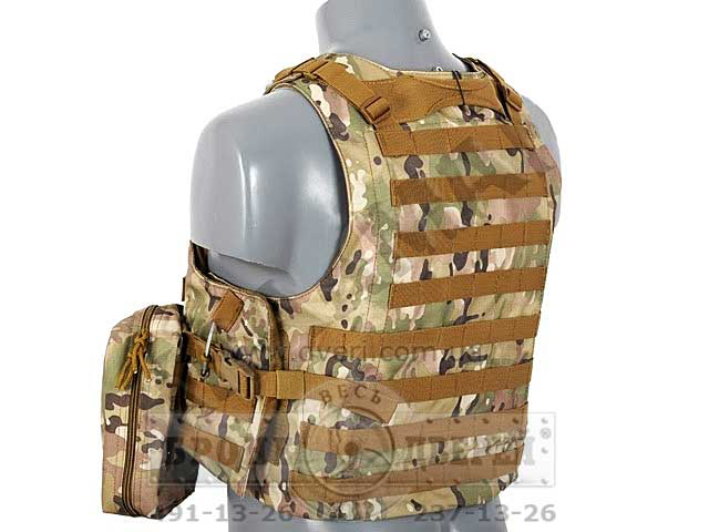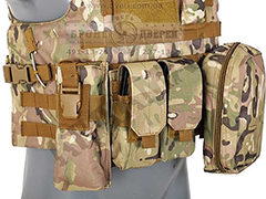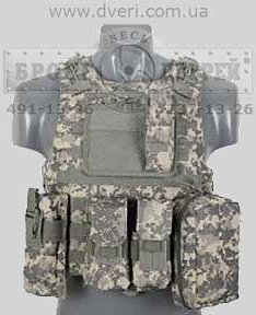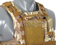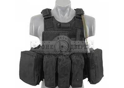 Вы можете купить бронежилет Plate Carrier показанный на фото ниже. В бронежилет Plate Carrier можно вставить 2 стандартные плиты 30 см × 25 см. В стоимость чехла жилета Plate Carrier (чехол - это бронежилет без броненаполнения) входят подсумки: 1 аптечка, 3 подсумка универсальных под рожки АК-74 и НАТОвское оружие и 1 универсальный подсумок, 1 подсумок для пистолетного магазина и 1 плоский подсумок для документов.