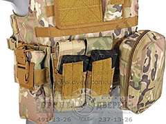 В комплектацию бронежилета (разгрузки) CIRAS MAR входит кольцо для быстрого сброса жилета,включает в себя 5 двойных магазинных подсумков М4/М16, АК-74, 1 подсумок для документов, 1 утилитарный и 2 пистолетный/фонарный подсумка.