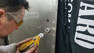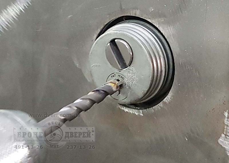 Мы меняли различные сверла, но пройти броню все не удавалось. Забегая наперед, хочется заметить, что теперь всем видно почему воры очень редко взламывают двери сверлением и почему сверло относится к 4-му - очень крутому классу взломостойкости дверей.