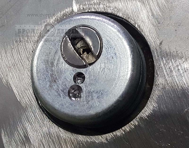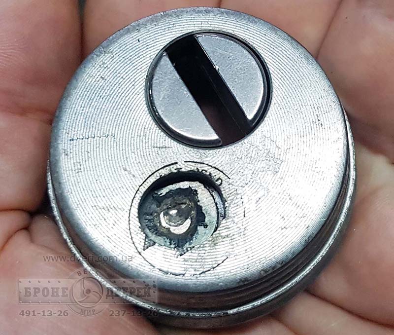 Вот так выглядит защитная каленая шайба, которая не позволяет просверлить броненакладку. Хочется отметить то, что на других испытаниях в лабораториях, броненакладки также проверялись на сбивание и тоже отлично себя показали.