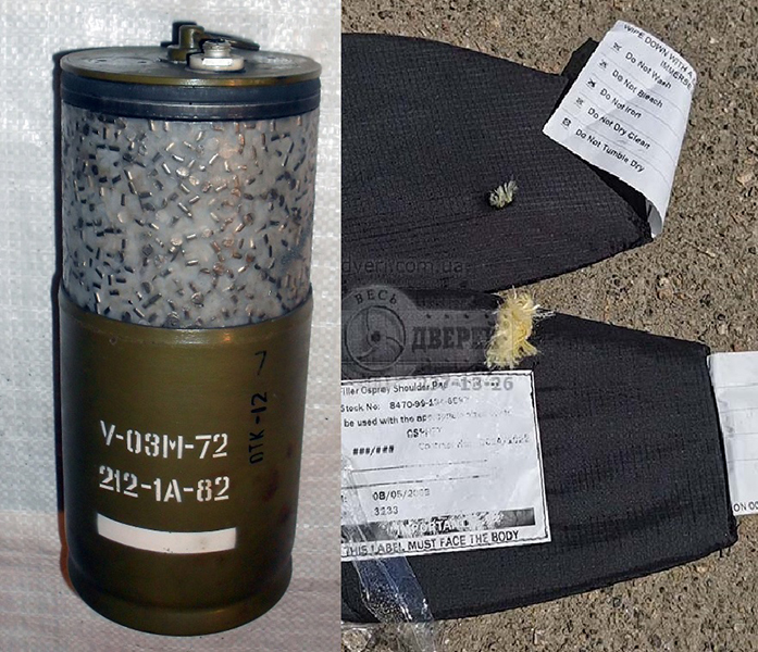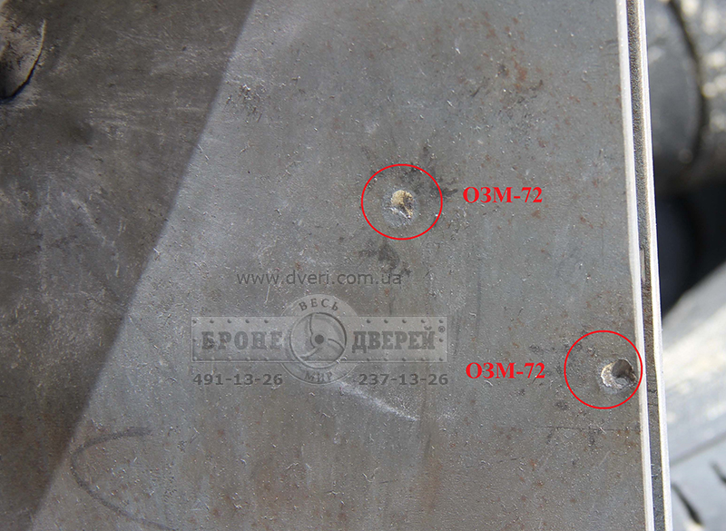 На щиті, на першому шарі, який має 4 клас захисту, сліди від фрагментів міни ОЗМ-72 були у вигляді виколотих ямок, що дуже схоже зі слідами куль 7Н10! Саме не стандартних куль 3 класу (7Н6), а саме 7Н10 (із загартованим осердям). Склалося таке враження, що міна просто нашпигована не будь-якими елементами, а саме кулями 7Н10 з відповідною швидкістю та твердістю. Ось такі руйнації вони залишають.