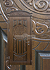 Пример №1: модель F520u94 в плёнке 1011 под патиной 8981. Фронтон v520u81, наличник n520u41. Пример №2: модель F585u29 под патиной 9005 в плёнке 1027. Наличник верхний v585u20 и боковой n585u20. Пример №3: модель F654u24 в пленке 503 под патиной 9005. Пример №4: модель F671u105 в пленке 1011 под патиной 8981. Фронтон v671u63 и наличник n637u20. Пример №5: модель F676u49 в плёнке 1001 под патиной 9947. Фронтон v675u63 и наличник n637u20.