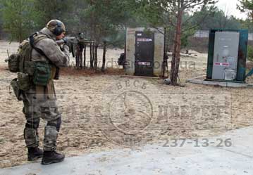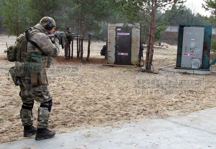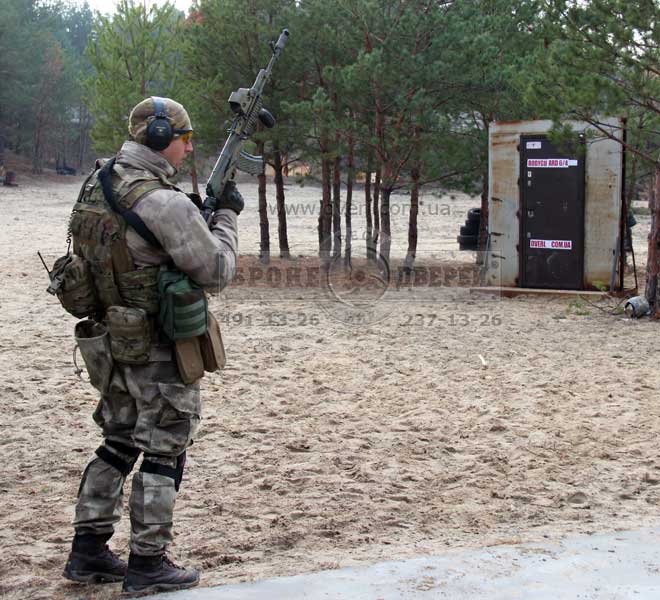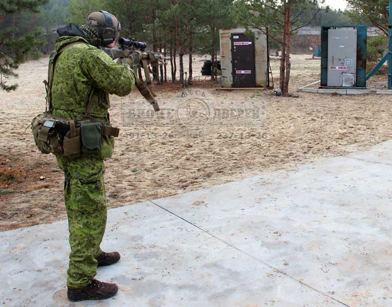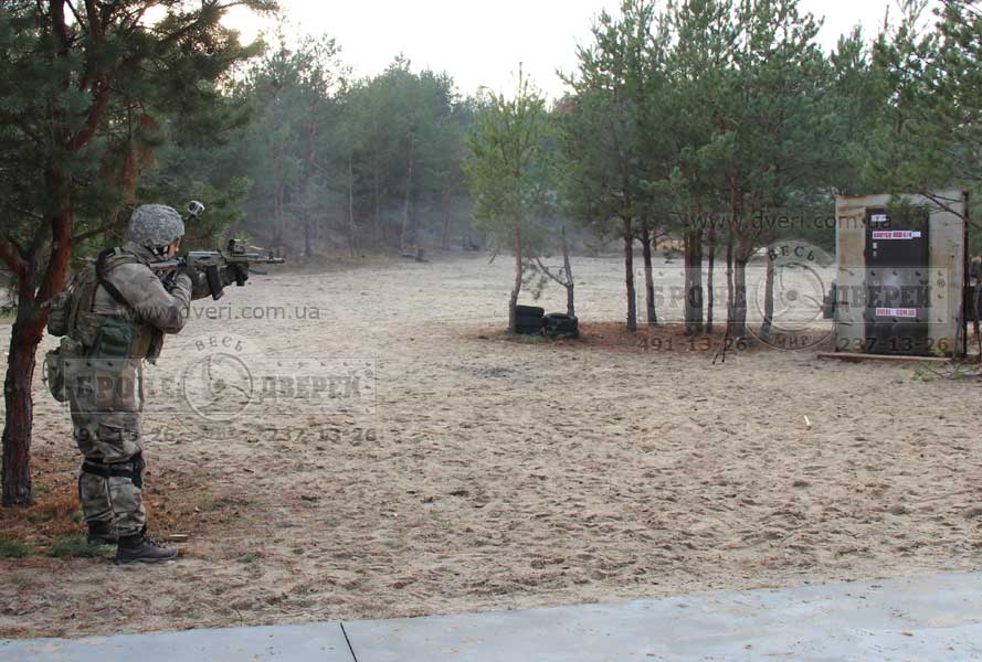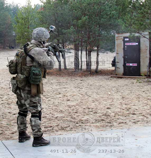 Стрельба по двери из винтовки Z-10Кал.308 (пр-во «Зброяр»). Следующим испытанием бойцы предложили выстрелить по двери очень мощным патроном 308 калибра из новой украинской винтовки Z-10 308 кал. производства «Зброяр».