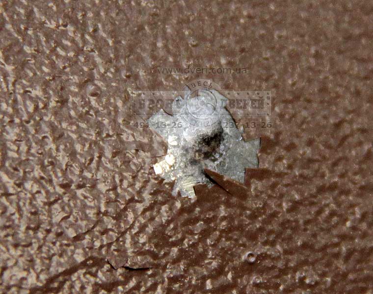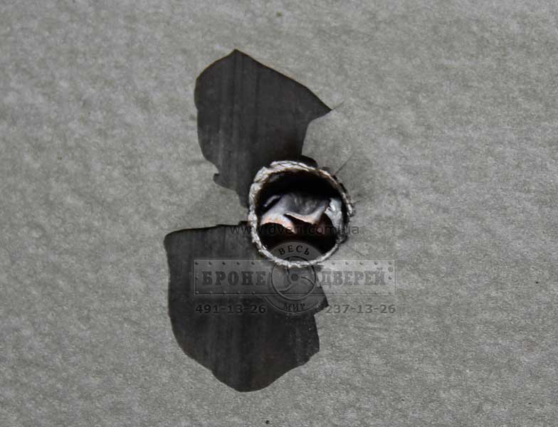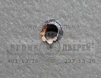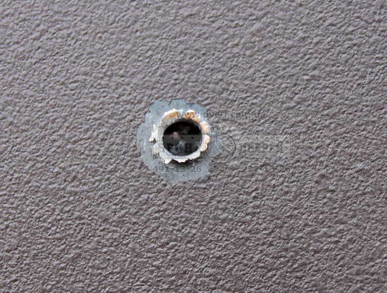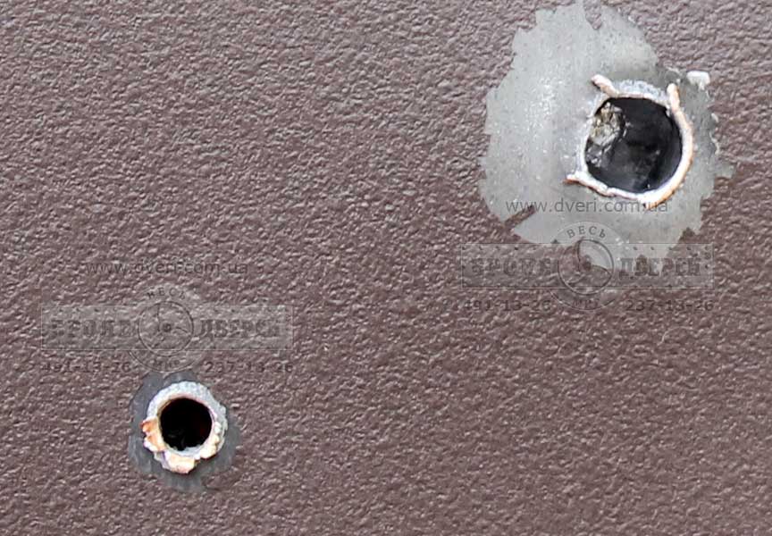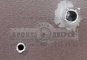 Испытания дверей пулей 7-Н-6. Сначала мы произвели стрельбу по бронедверям стандартными пулями 7-Н-6 кал. 5.45 мм. с стальным сердечником. Это пули 3 класса по ДСТУ. Выстрелы произвели по одной и другой двери.