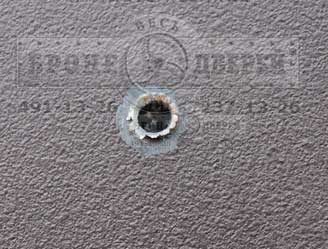 Наши взломостойкие и бронированные двери с честью выдержали испытания и пули 308 калибра так же их не пробили. Ниже вы можете увидеть фото дверей после испытания.