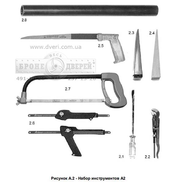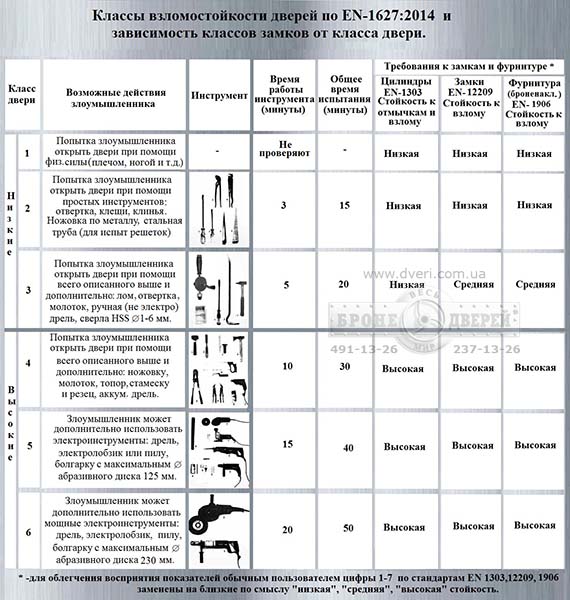 Согласно стандарта на 2-ой класс, двери должны выстоять всего 3 минуты взлома очень популярным инструментом воров таким, как: отвертка, клещи и т.д. В лаборатории имитируется попытка взлома слабеньким вором. Который не очень опытен и обладает небольшим набором инструментов и ограничен в времени.