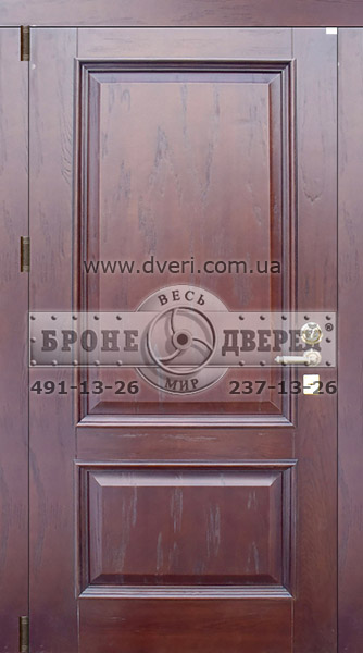 Бронированная дверь с дубовыми филенками и штапиком, повторяющим рисунок.