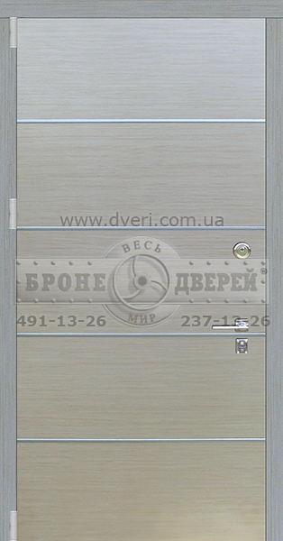 Входные двери (BODYGUARD™ ДЗВП 4/2 - 4-го класса взломостойкости) с отделкой МДФ панелями 16 мм с 2-х сторон. МДФ покрыта пленкой VINORIT™ 41S-1. Рисунок 007 + декоративная вставка из профиля в 4 полоски. Ручка Corsica цвета хром. Наличник из МДФ. Дверь индивидуального изготовления. Больше о комплектации двери см. по ссылке выше.
