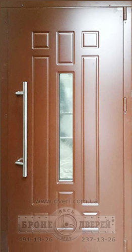 Отделка в тёплых тонах; МДФ крашенный по RAL. Остекление может быть как пулестойким, так и обычным. Ручка скоба по желанию.