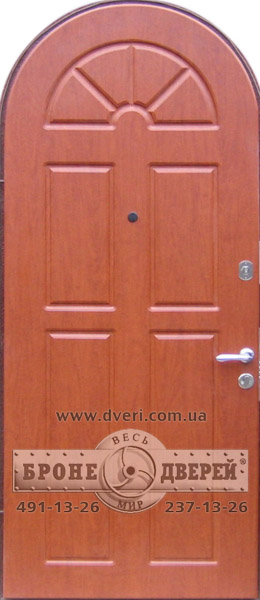 Бронедвери (двери металлические) с отделкой МДФ Панель ламинированная, арочная.Замок нижний Azbe 8912 c броненакладкой М-4 цвет хром. Ручка Armadilo Corvus . Замок верхний Гардиан 3001.