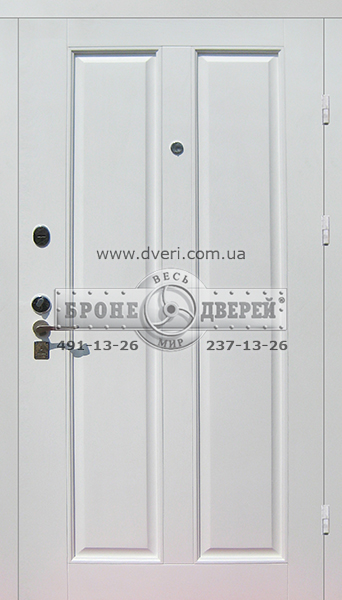 Лиштва з МДФ, латунне вічко, базові, дуже надійні замки максимального класу захисту, ручка й фурнітура хромовані.