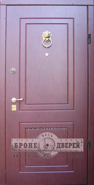 Бронедверь с МДФ панелью ламинированной, наличник мдф, замок нижний CISA 57.535 ручка МВС, замок верхний Azbe 8913 c броненакладкой М-4. Латунная стукалка лев.