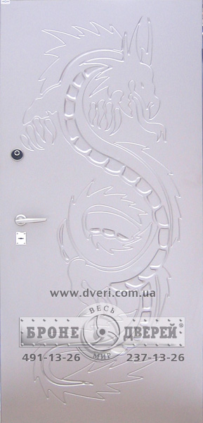 Стальные двери (бронедвери или металлические двери) с отделкой МДФ панелями ламинированными( покрыты пластиком). Спецрисунок- дракон. Замок нижний CISA 57.685 с возможностью перекодировки ключа, ручка ARMADILLO libra. Замок верхний Azbe 8913 c броненакладкой М-4.