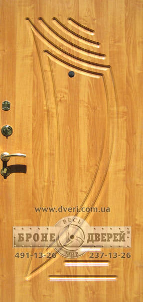 Бронедвері захисні, стійкі до відмичок і зламу, 4+ клас (RC-4) згідно з EN-1627, оздоблення бронедверей - двокомпонентна МДФ панель, ламінована плівкою під дерево коричневого кольору, з прожилками й сучасним дизайнерським фрезеруванням, виділеним іншим кольором.