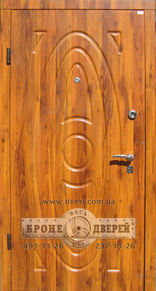 Стальные двери (бронедвери) отделкой МДФ панелями ламинированными( покрыты пластиком имитирующим дерево). Наличник из МДФ. Замок нижний CISA 57.685 с возможностью перекодировки ключа,. Ручка Armadilo Libra. . Замок верхний Azbe 8913. c броненакладкой М-5. Глазок латунный Италия. Петли упорноподшипниковые.