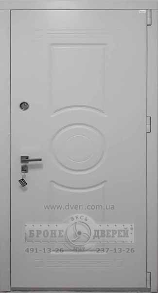 Бронедвері BODYGUARD™, захисні, стійкі до відмичок і зламу, 4+ клас (RC-4) згідно з EN-1627, оздоблення бронедверей - МДФ панель, ламінована плівкою під дерево білого кольору, з сучасним дизайнерським фрезеруванням "Вишиванка".
